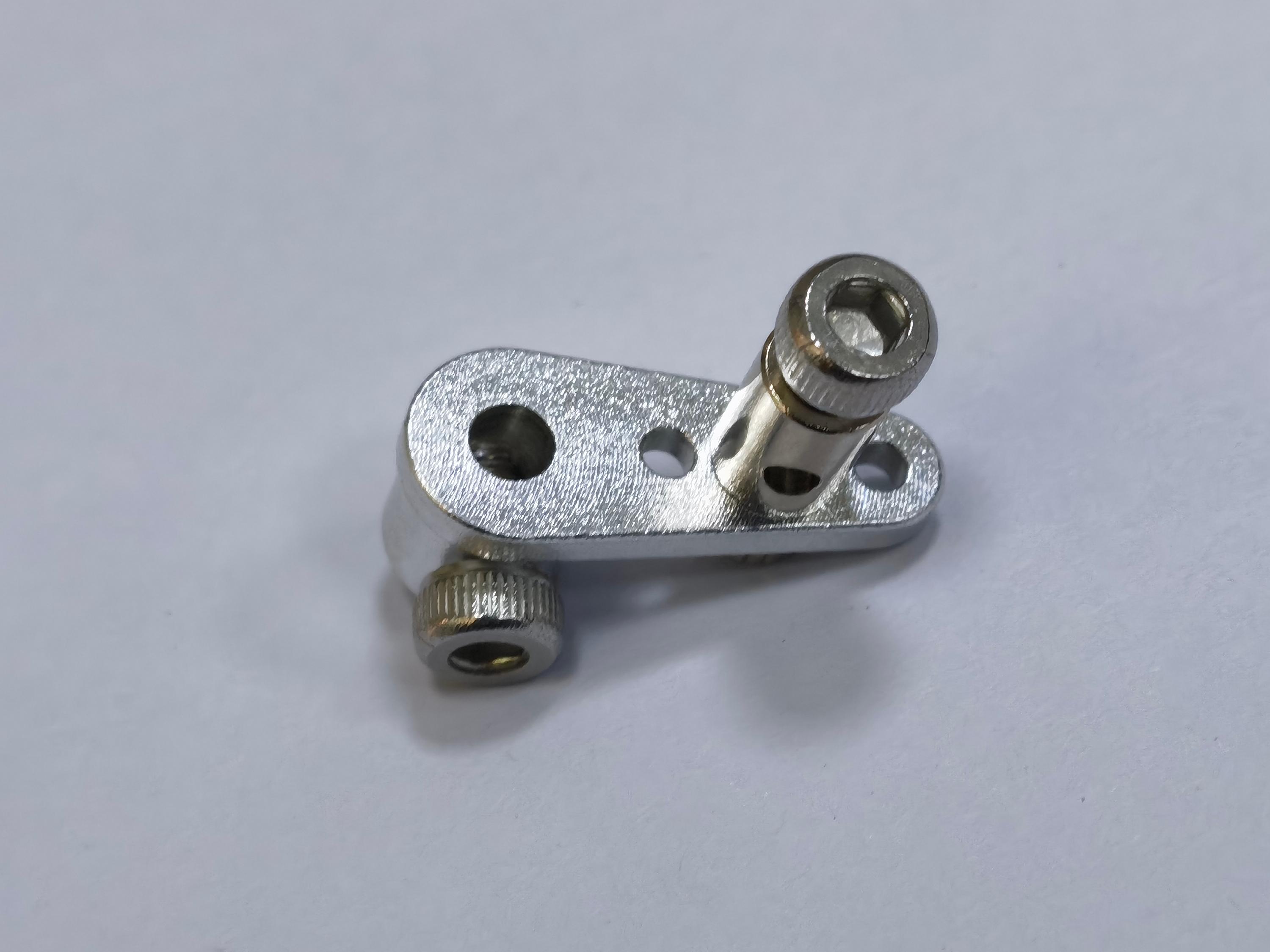 17) Metal Rudder Arm – The hole for the clevis has been reduced slightly for a tighter fit removing any slop in the linkages.