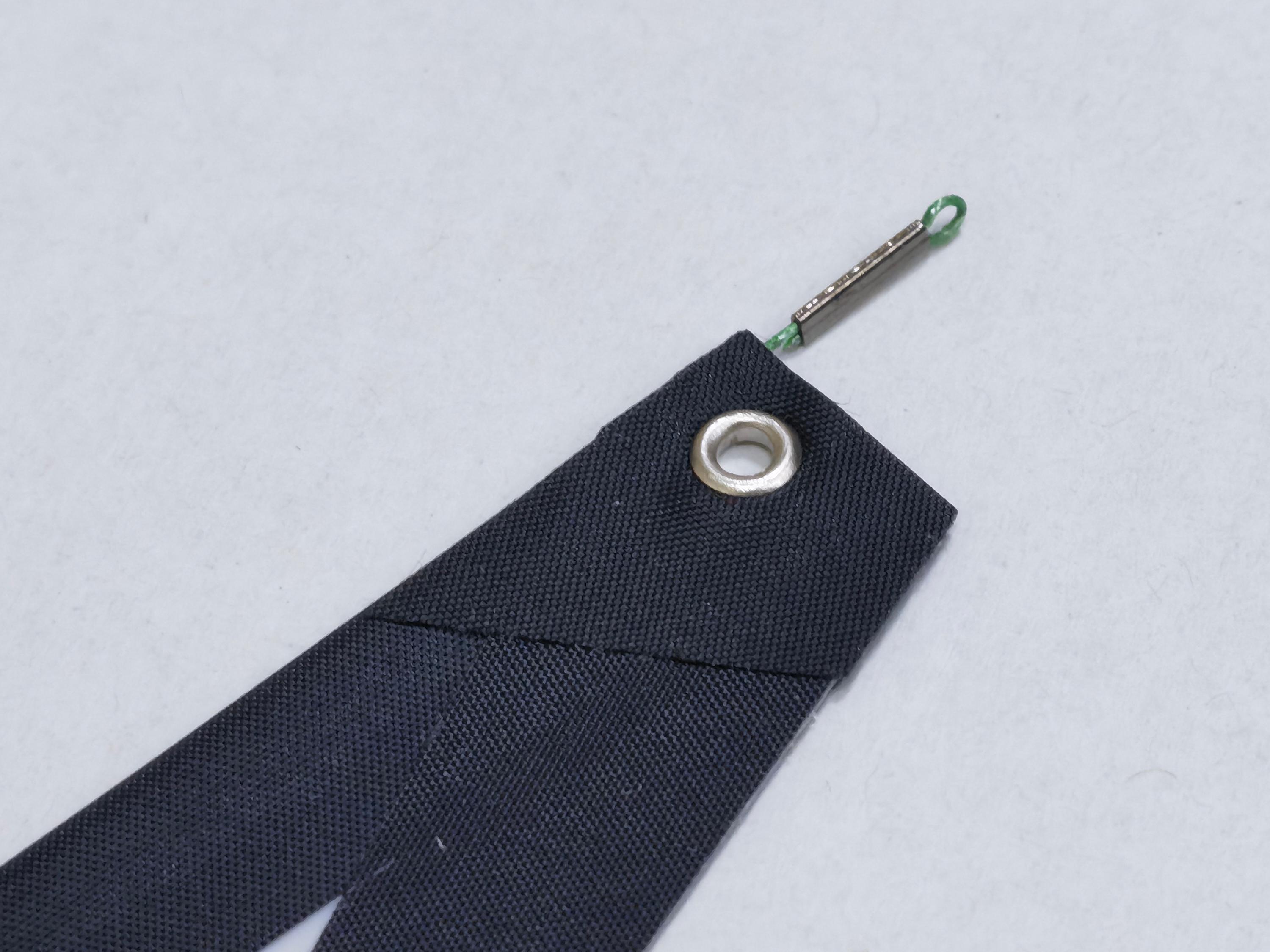 11) Jib Luff Sail Eyelets – These have been moved closer to the jib tack for a smoother sail shape at the tack. Thinner copper clamps will be replaced on the wire loops to prevent slippage.